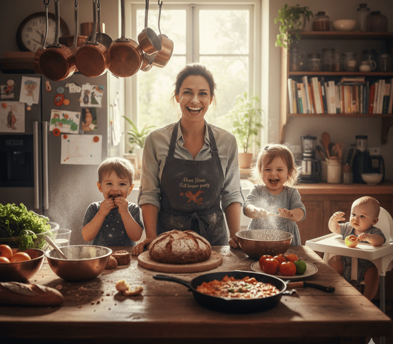 Hinter den Kulissen meines Kochimperiums stehe ich, eine 35-jährige gelernte Köchin und stolze Dreifach-Mama. In meinem Alltag verschmelzen meine Profi-Erfahrung und die Liebe zum hausgemachten Genuss.